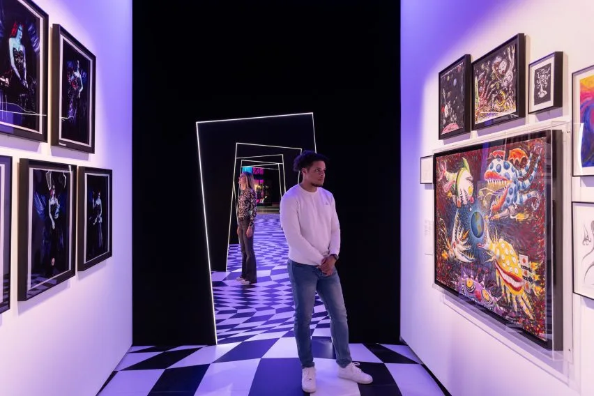 - Immersive Experience: A disorienting corridor of angled frames and checkered floors draws visitors into Burton’s bizarre world, featuring towering sculptures of the artist’s otherworldly characters.